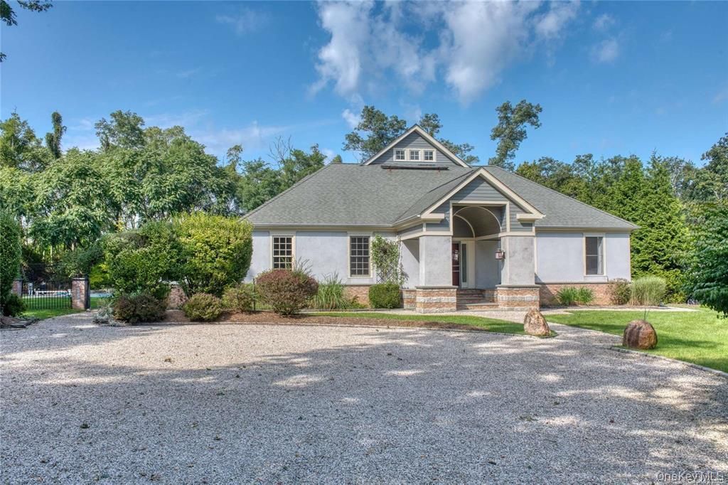 House is at the end of Ketcham Lane. Introducing a Sequestered Post Modern custom designed home. The property backs up to Cove Beach Estates and NYS Ruth Oliva Preserve. This 3 + bedroom home offers high ceilings and sun-filled rooms with high-end hardwood floors throughout. The well maintained property features an inground backyard pool and patio entertainment area, all just a stones throw from the Long Island Sound and the Peconic Bay.